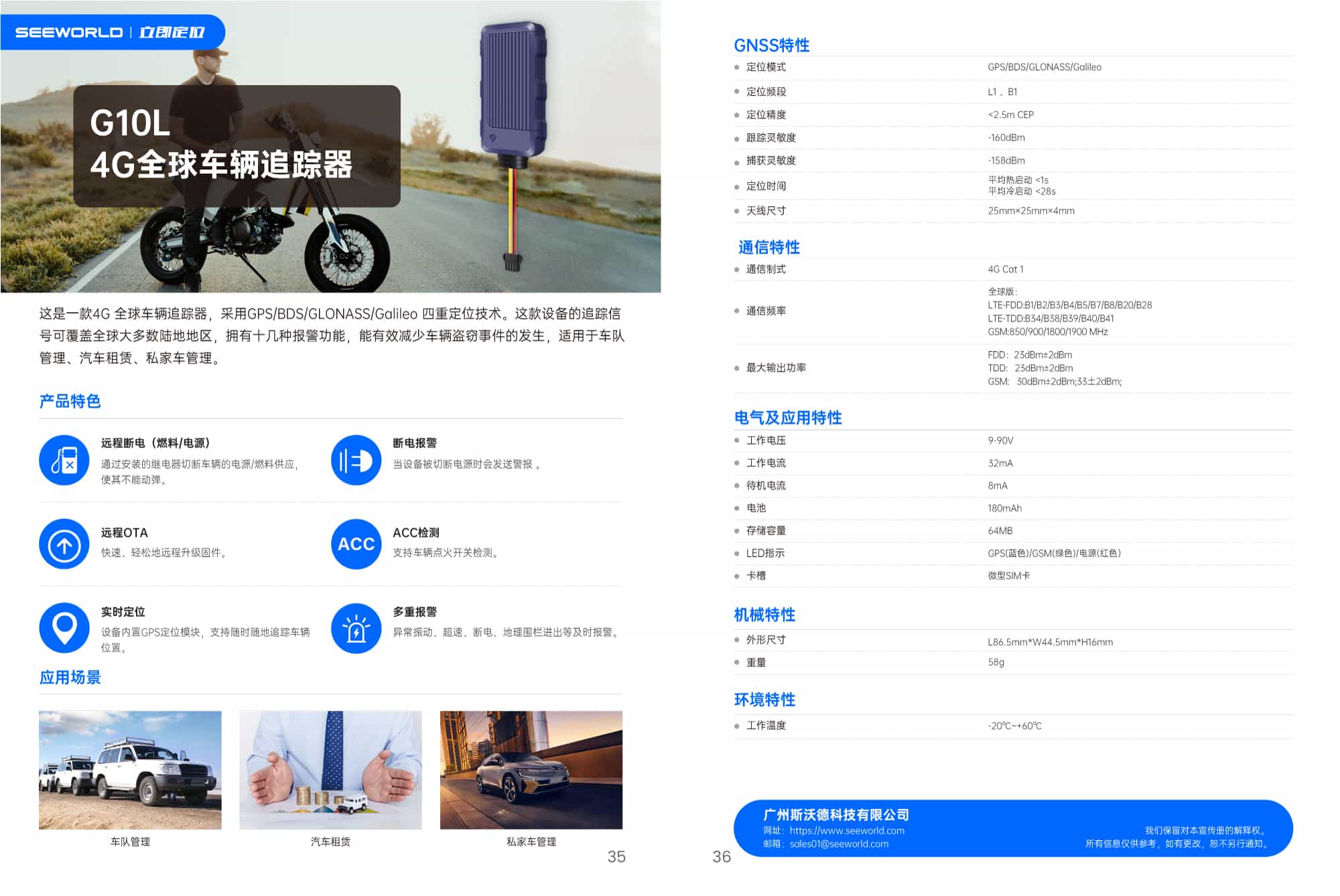 G10L是一款4G全球車(chē)輛定位器,采用GPS/BDS/GLONASS/Galileo四重定位技術(shù)。設(shè)備的追蹤信號(hào)可覆蓋全球大多數(shù)陸地地區(qū),擁有十幾種報(bào)警功能,能有效減少車(chē)輛盜竊事件的發(fā)生,適用于車(chē)隊(duì)管理、汽車(chē)租賃、私家車(chē)管理場(chǎng)景。